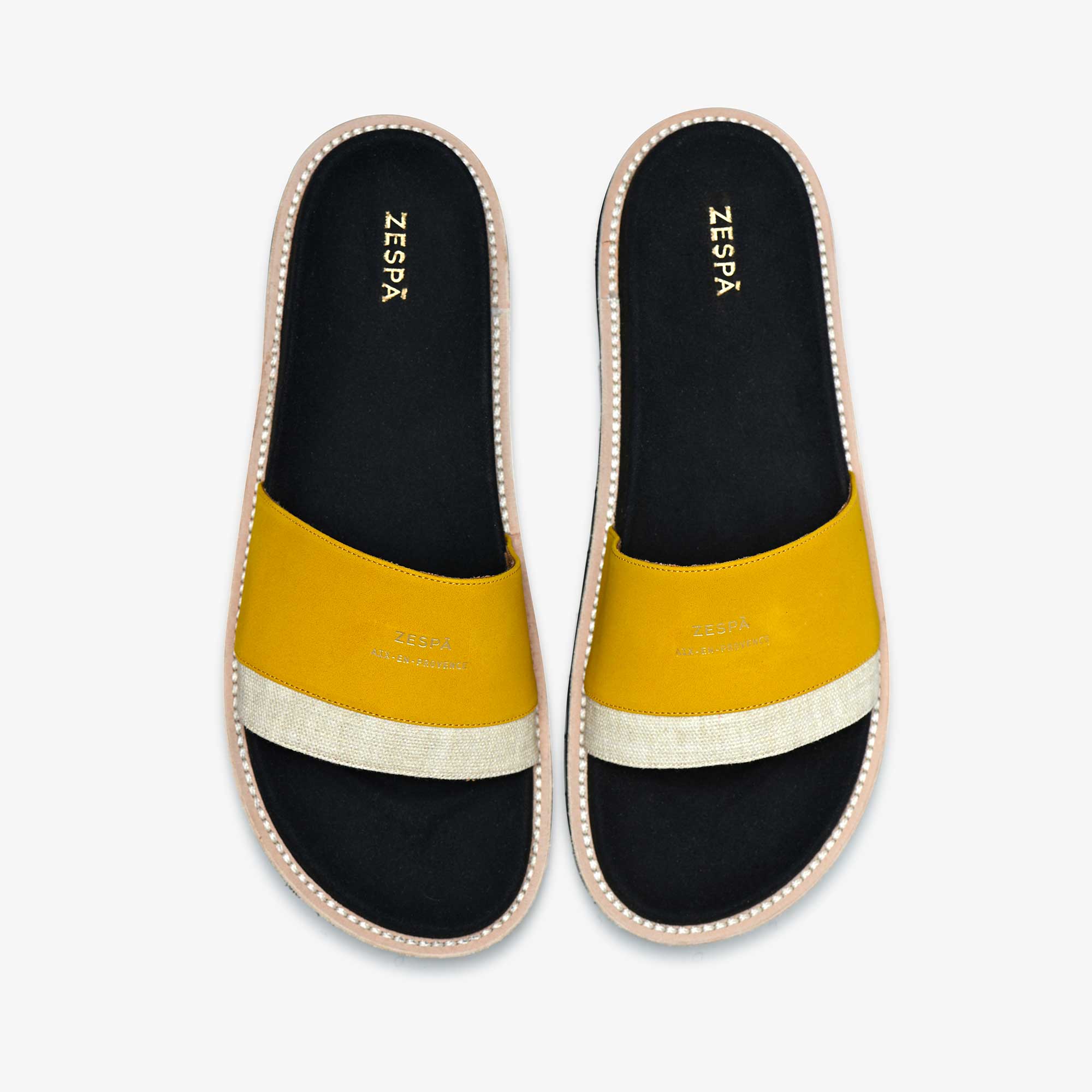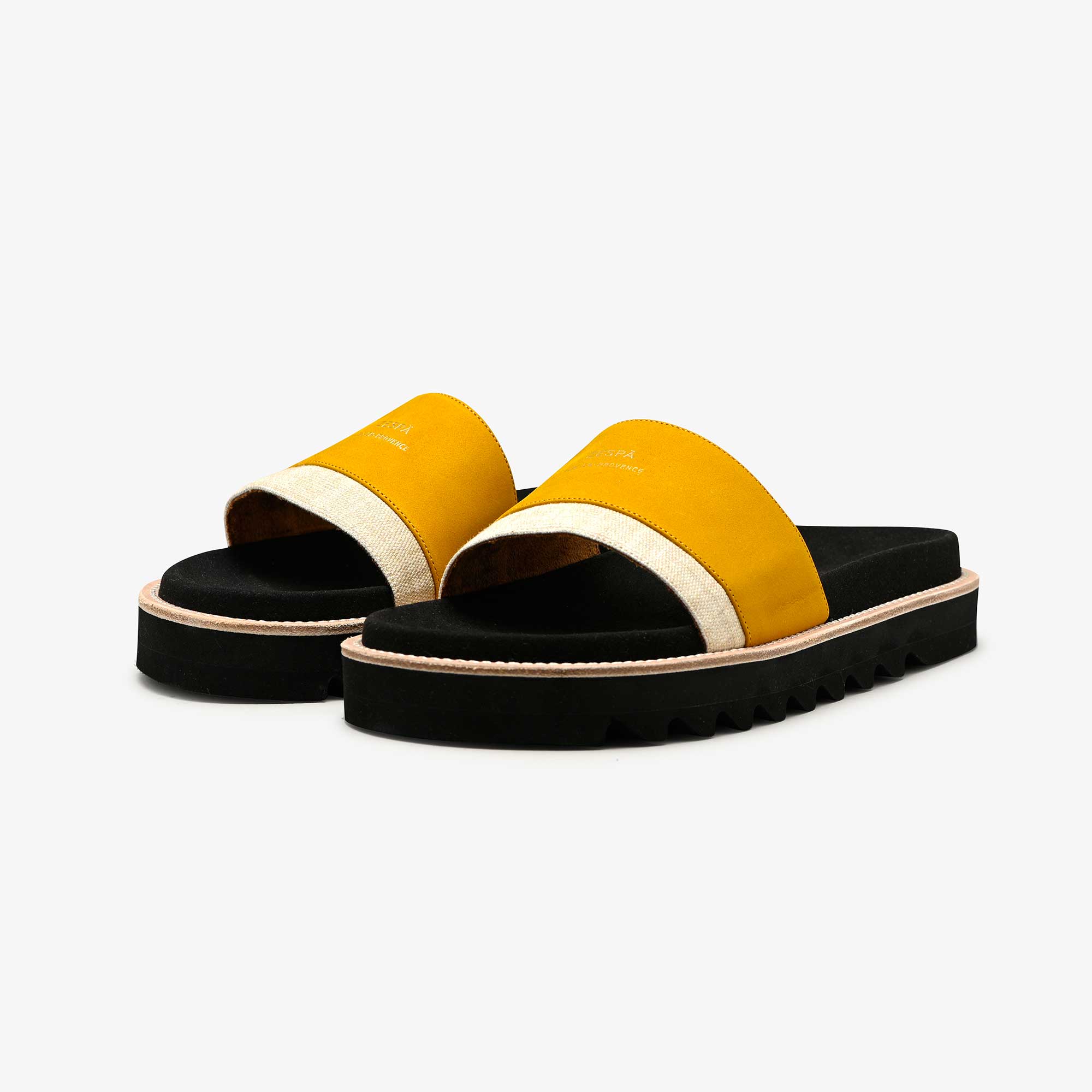 L’unique fantaisie est notre logo doré et embossé à chaud sur le dessus de l'empeigne et sur la semelle au niveau du talon. Simplicité et confort pour l’indispensable de l’été.